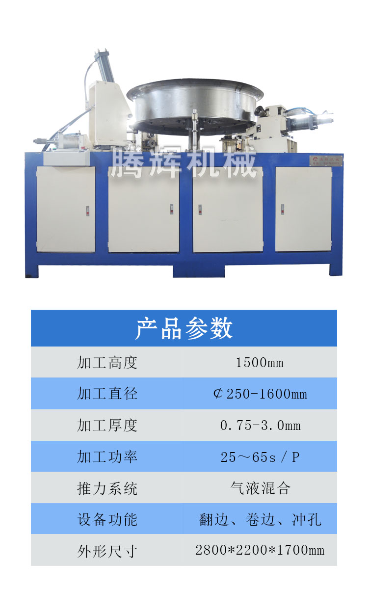 本文介紹的設(shè)備專用于軸流風(fēng)機(jī)外殼的翻邊沖孔機(jī),加工直徑范圍可達(dá)1600mm,該機(jī)器操作簡(jiǎn)單,更換模具快捷,能耗低、效率高,一人操作即可完成風(fēng)機(jī)翻邊、卷邊、打孔的制作。(公司根據(jù)客戶需求,為客戶量身定制適合的設(shè)備,歡迎新老客戶咨詢了解)
